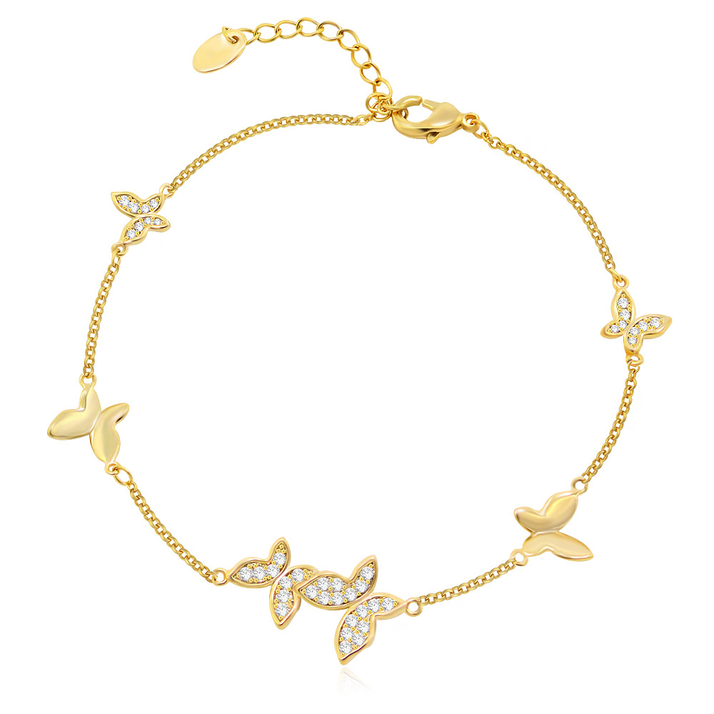 Charming gold bracelet adorned with a crystal-encrusted butterfly charm.