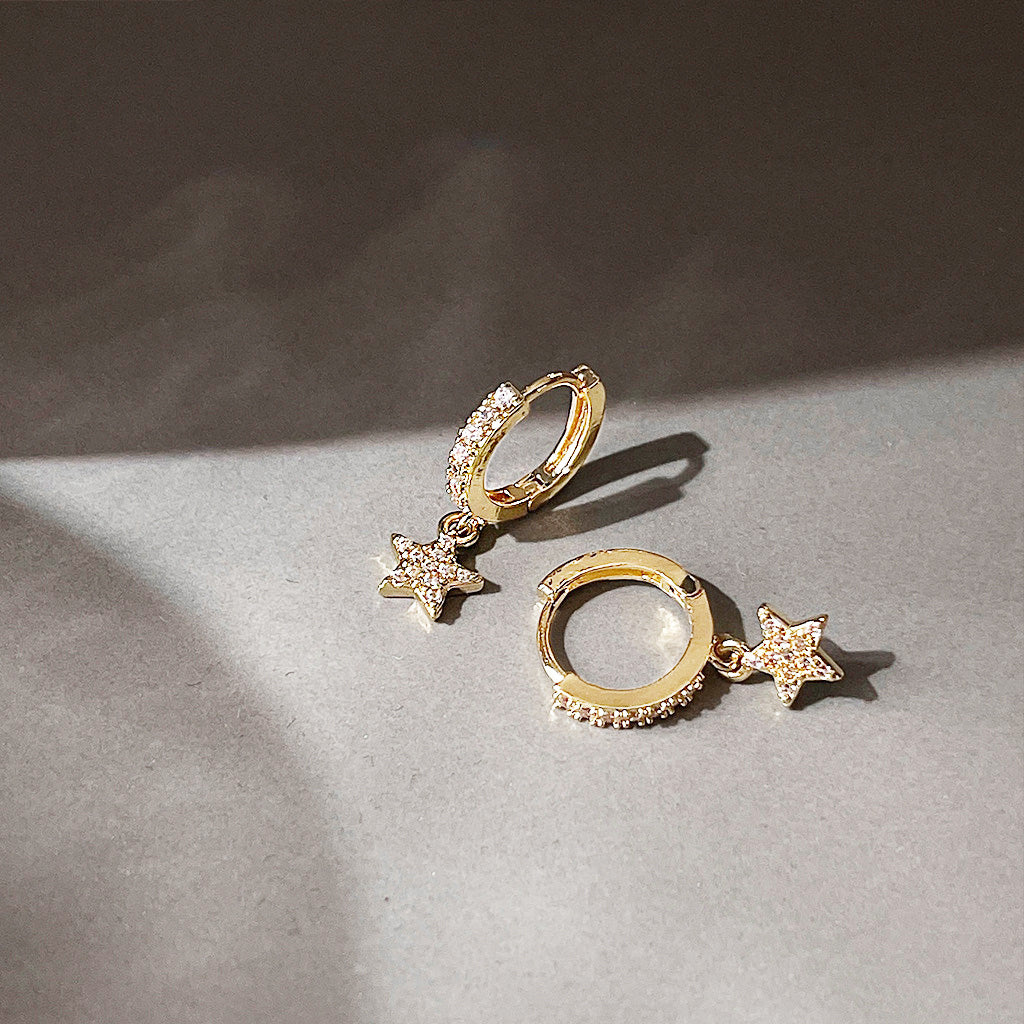 - Earring Style: Huggie Hoop with Star Drop Charm