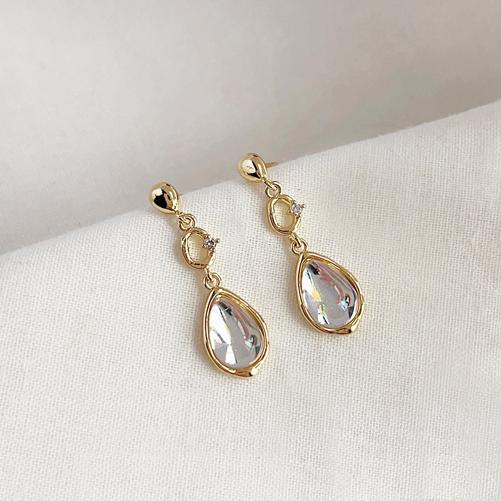 - Product Name: 14k Gold Plated Clear Glass Water Drop Earrings