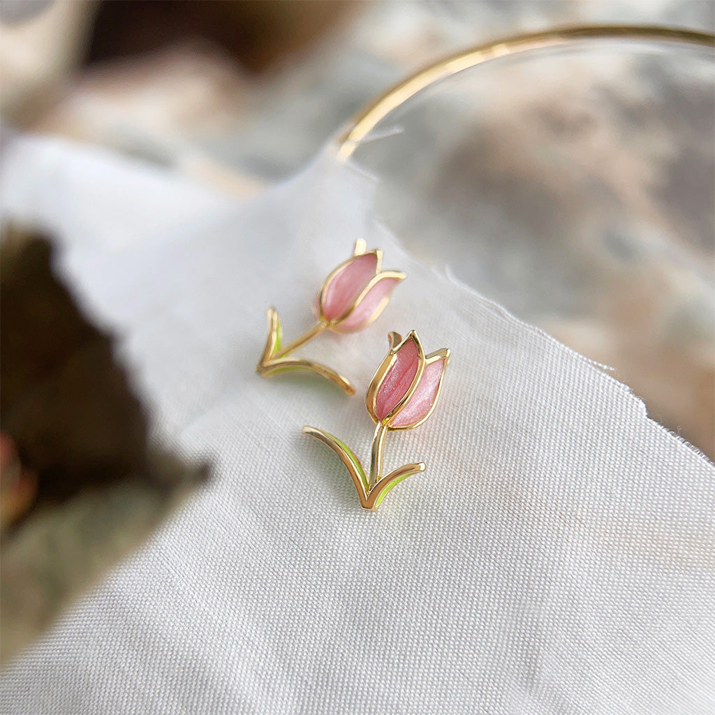 - Vibrant Design: Features intricate enamel work in soft pink and green, mimicking a real tulip.
