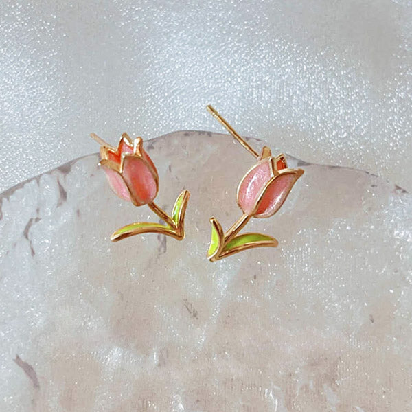 - Product Name: 14k Gold Plated Enamel Tiny Tulip Flower Stud Earrings