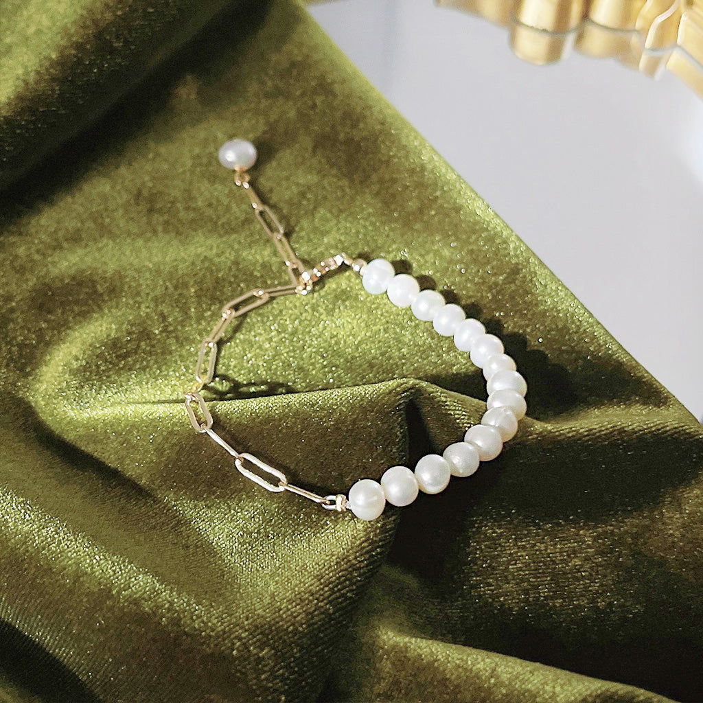 - Product Name: 14k Gold Plated Freshwater Pearl Paper Clip Chain Bracelets