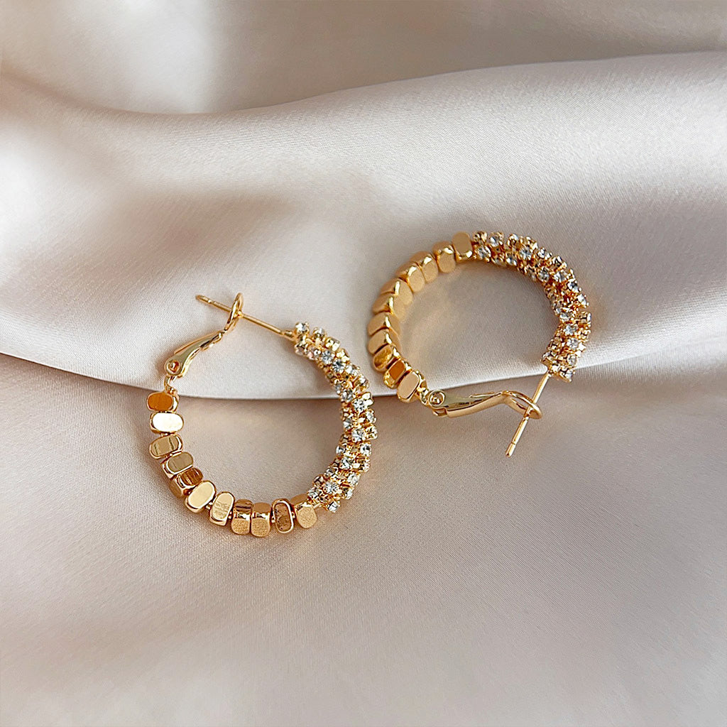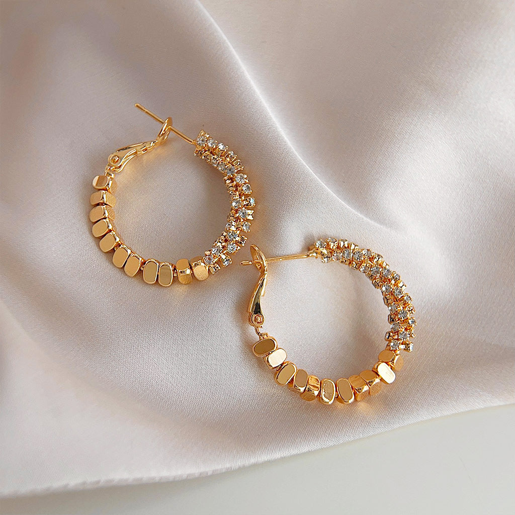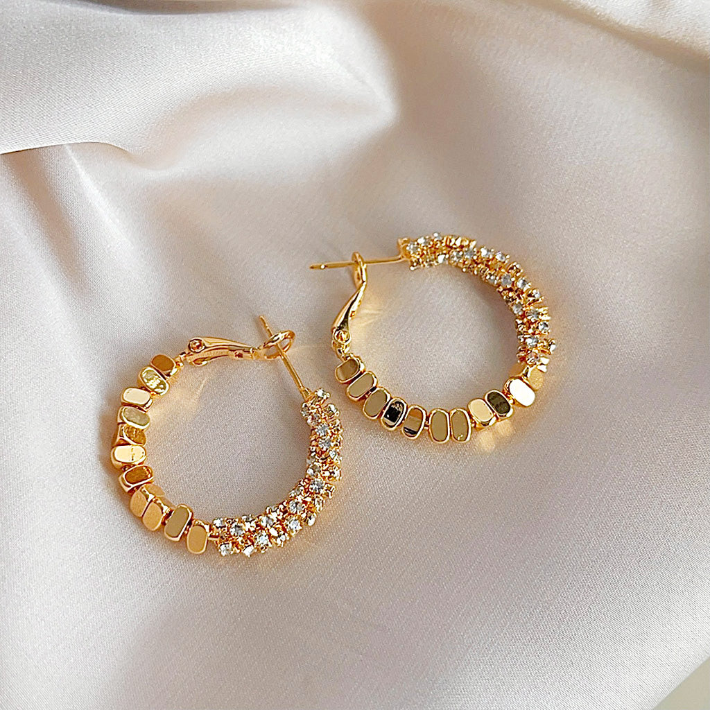 - Style: Hoop, Round, Metal Stitching, Crystal Embellished