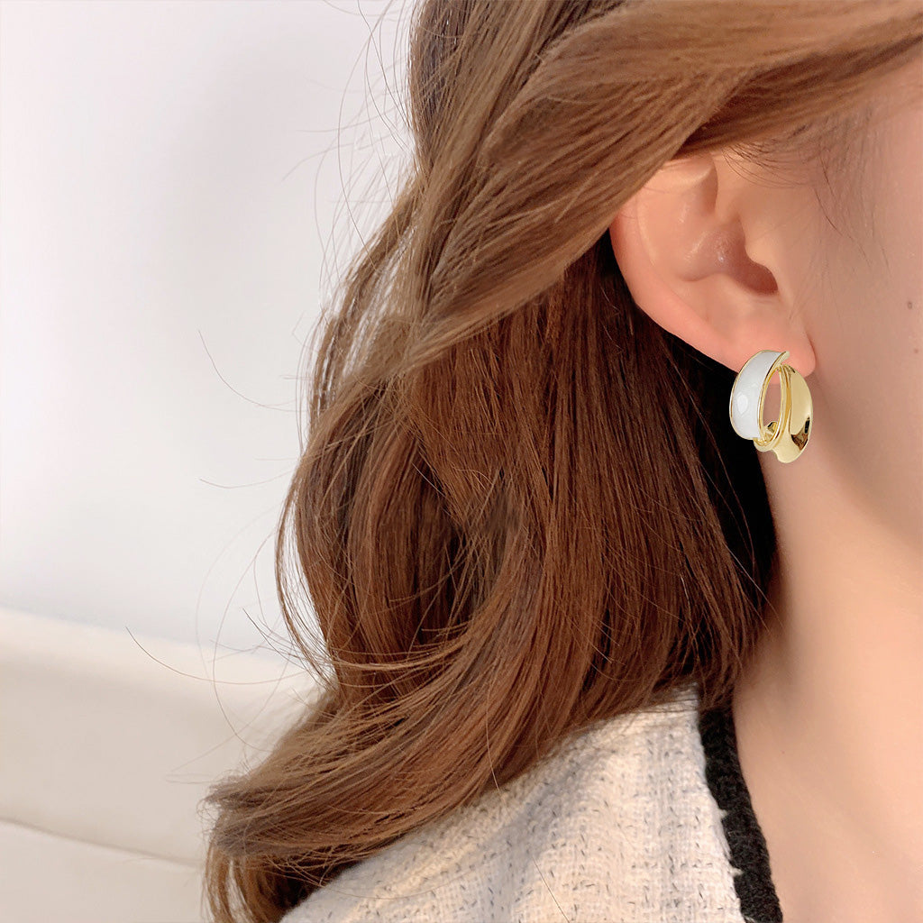 Detailed shot of the gold hoop-style earrings with a clean white inlay, part of the five-pair set.