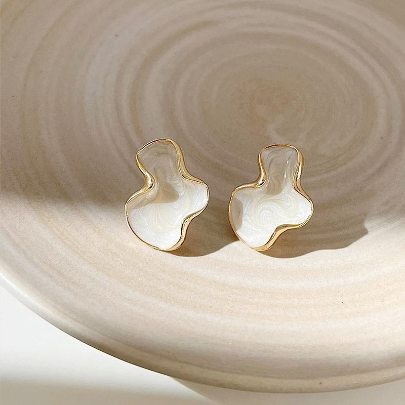 14k Gold Plated White Enamel Irregular Shape Stud Earrings (5 Pairs Set) - Custom Jewelry Manufacturing