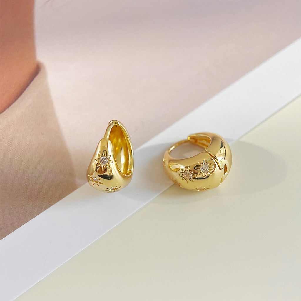 Elegant Brass Hoop Earrings with Sparkling Zircon