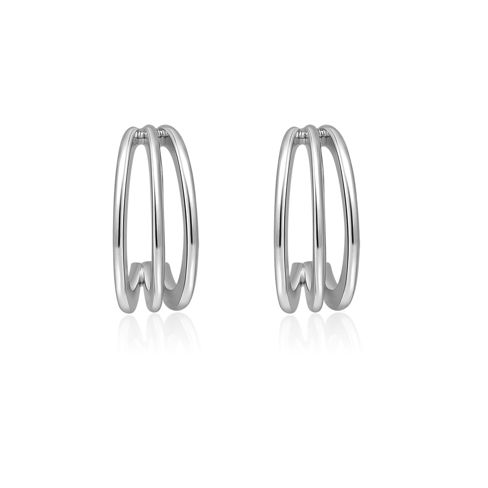Front view of the 3 Multi Row Hoop Earrings highlighting the polished rhodium finish
