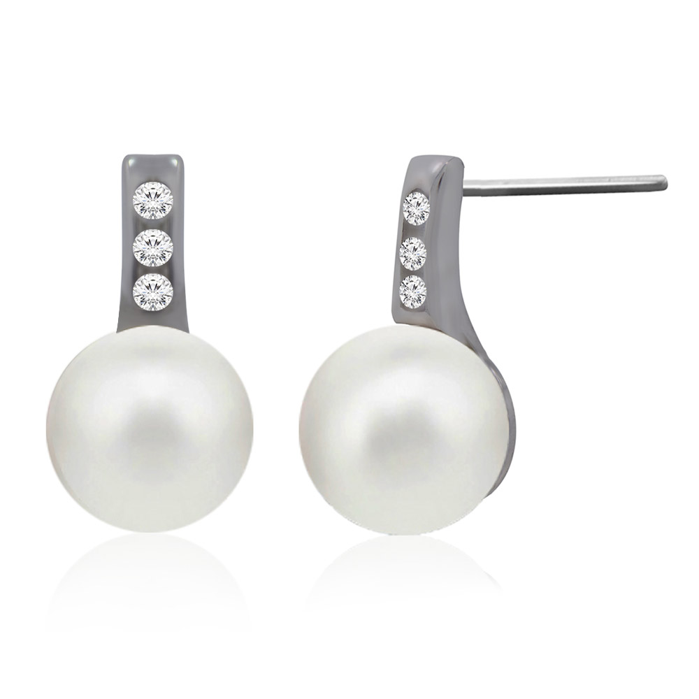 Discover our elegant 8.5MM Shell Pearl Earrings, beautifully crafted from rhodium-plated brass. These classic stud earrings feature a stunning shell pearl accented with sparkling white cubic zirconia, offering a timeless look of sophistication. Perfect for any occasion, they are secured with a reliable post closure. As a premier offering from JR Fashion Accessories' wholesale collection, these earrings combine quality craftsmanship with eye-catching design.