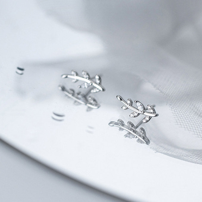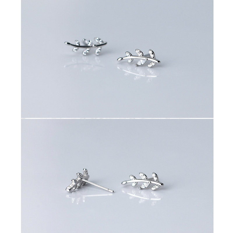 - Product Name: 925 Silver CZ Zircon Olive Leaves Stud Earrings