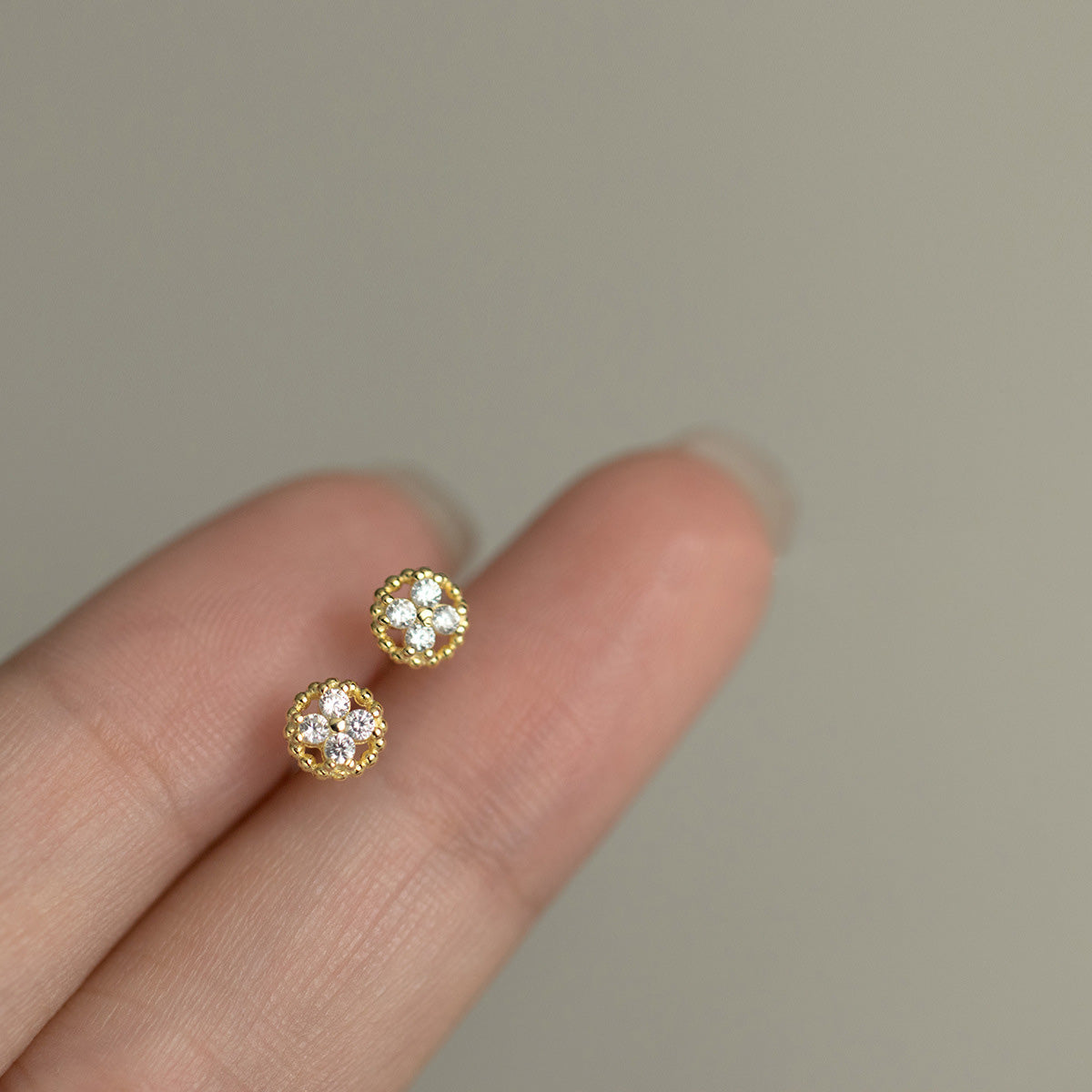 - Product Name: 925 Silver Dainty Small Cubic Zirconia Four Leaf Clover Stud Earrings