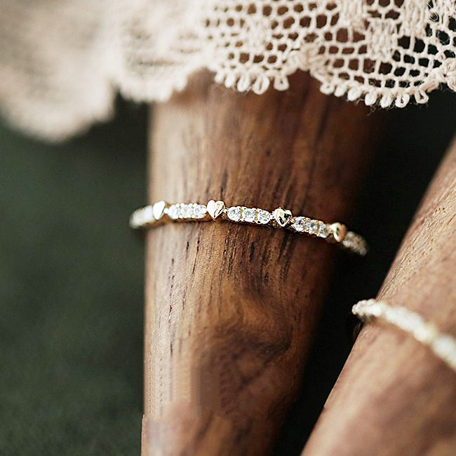 925 Silver Gold Heart Set Single Row Zircon Thin Ring Set of 5 - Custom Jewelry Manufacturing