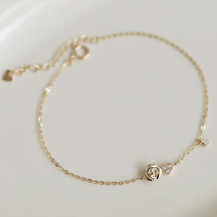 925 Silver Gold Tiny Rose Flower with Zirconia Heart Bracelet (Set of 5)