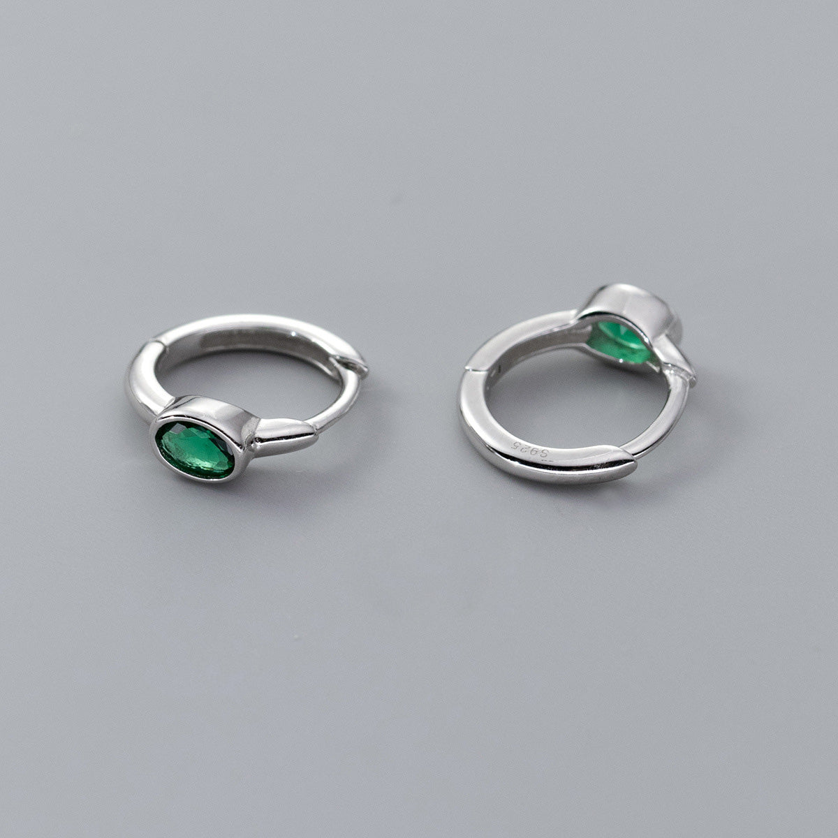 Crafted from genuine 925 sterling silver, these earrings are hypoallergenic and durable, ensuring long-lasting comfort and shine. Each earring is meticulously set with a brilliant oval gemstone, available in classic white and vibrant green. The secure huggie closure provides a snug and comfortable fit, making them easy to wear all day long.