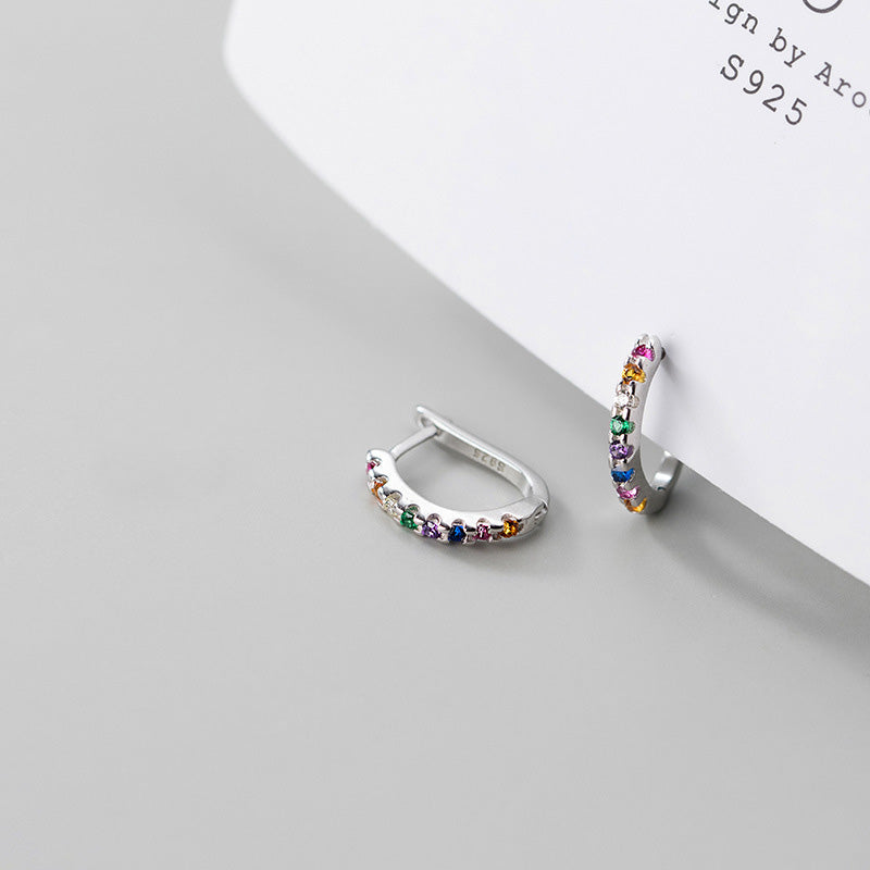 - Product Name: 925 Silver Rainbow Rhinestone Geometric Dainty Hoop Huggie Earrings (Set of 5 Pairs)