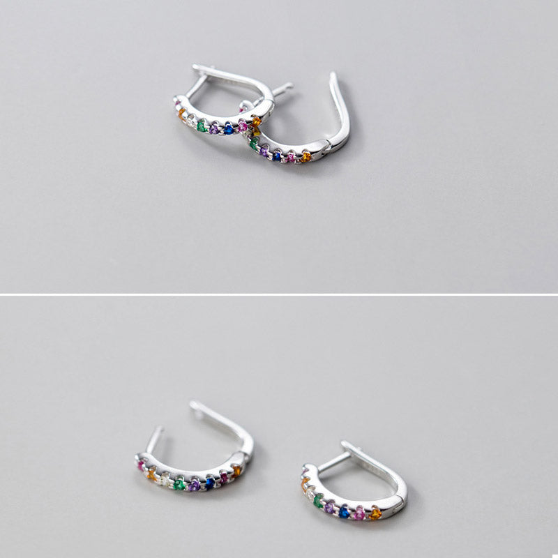 This set of rainbow rhinestone huggie earrings exemplifies our commitment to quality craftsmanship and contemporary design. The use of 925 sterling silver provides a solid foundation, while the sparkling rhinestones add a playful yet sophisticated touch. The geometric shapes are modern and appeal to a wide demographic.