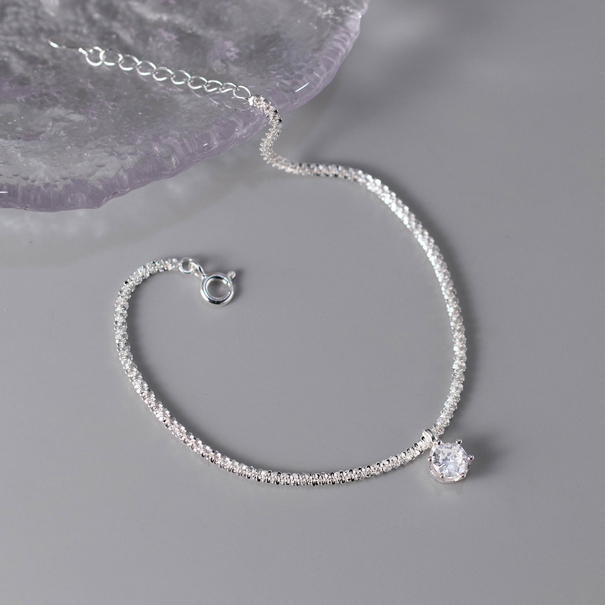 A luxurious 925 silver bracelet showcasing a sparkling clear zircon stone, demonstrating the set's versatile elegance.
