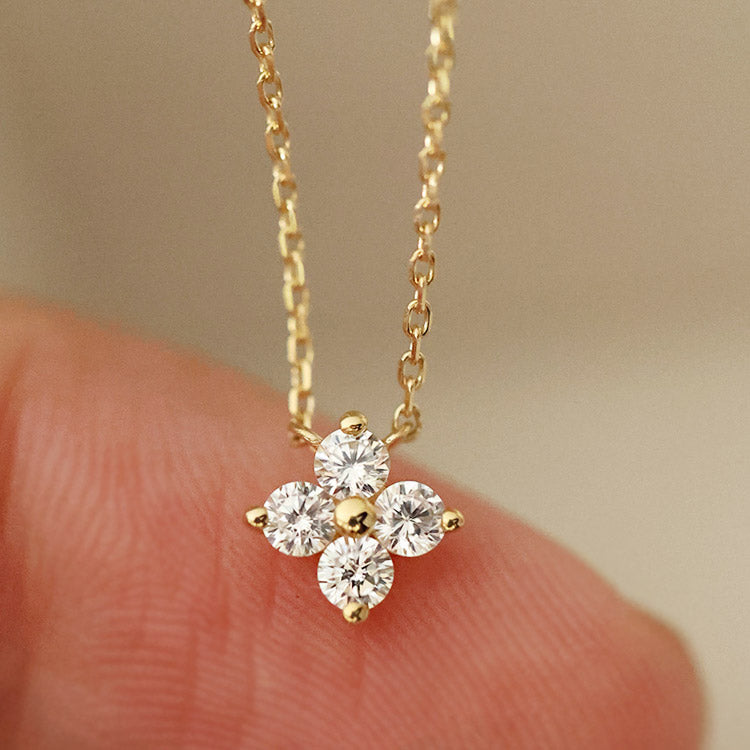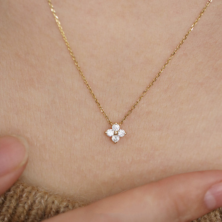 - Product Name: 925 Silver Zircon Tiny Four-Leaf Flower Pendant Necklace