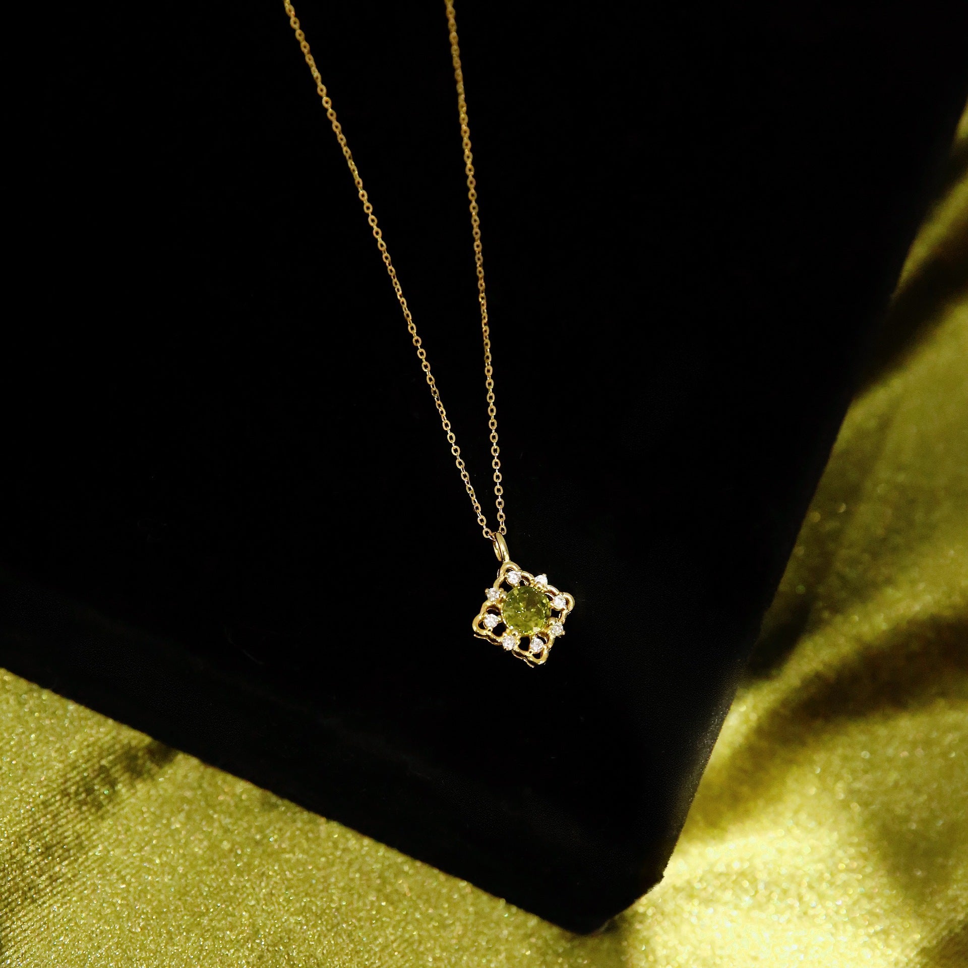 - Product Name: 925 Sterling Silver 14K Gold Plated Green Zircon Pendant Necklace