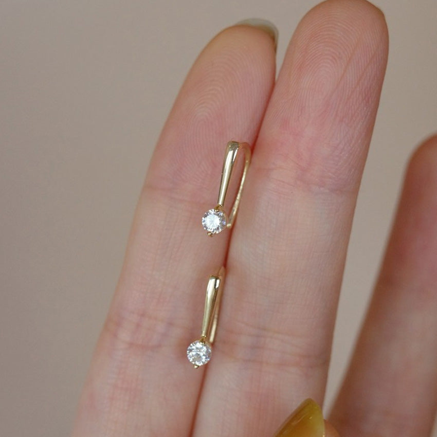 These minimalist hook earrings are crafted from 925 sterling silver and plated with 14K gold, offering a warm and elegant finish. A single cubic zirconia detail adds a touch of sparkle and sophistication to the design. Lightweight and perfect for everyday wear, these earrings can complement both casual and formal outfits effortlessly.