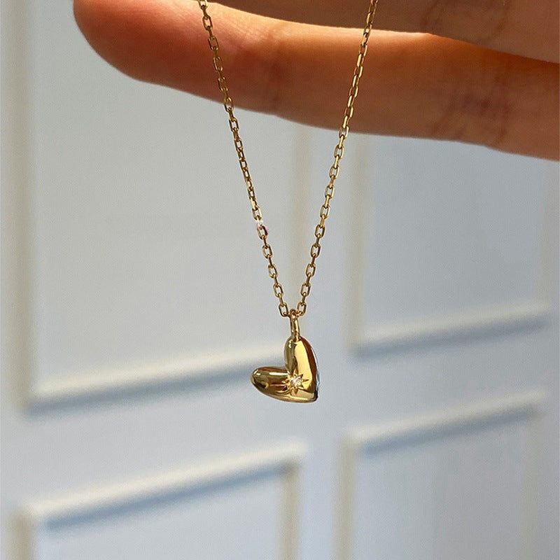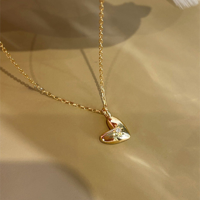 A unique and elegant necklace featuring a heart-shaped pendant adorned with a radiant starburst design. This piece combines celestial beauty with romantic charm, making it a timeless addition to any jewelry collection. Its versatile and stylish design complements both casual and formal outfits, making it perfect for daily wear, romantic dates, or as a thoughtful gift for a loved one.