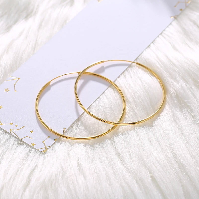 Discover the perfect blend of classic style and modern elegance with our 50mm Circle Big Hoop Earrings. Crafted from genuine 925 sterling silver, these earrings are a staple accessory for any fashion-forward collection. Their impressive size makes a confident statement, while the clean, minimalist design ensures they remain versatile for both casual and formal wear.