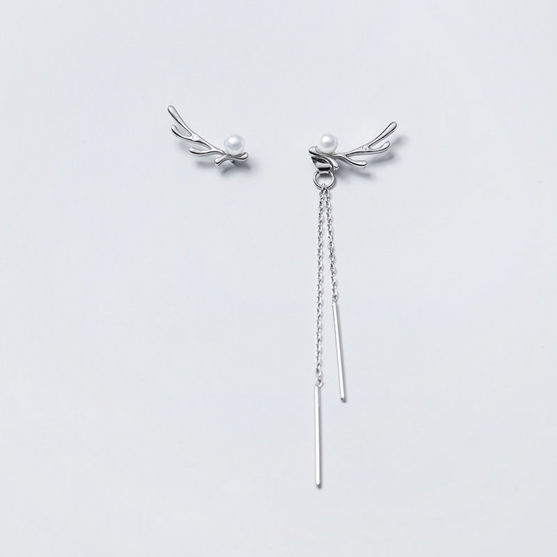 - Product Name: 925 Sterling Silver Asymmetrical Antler Pearl Drop Back Earrings