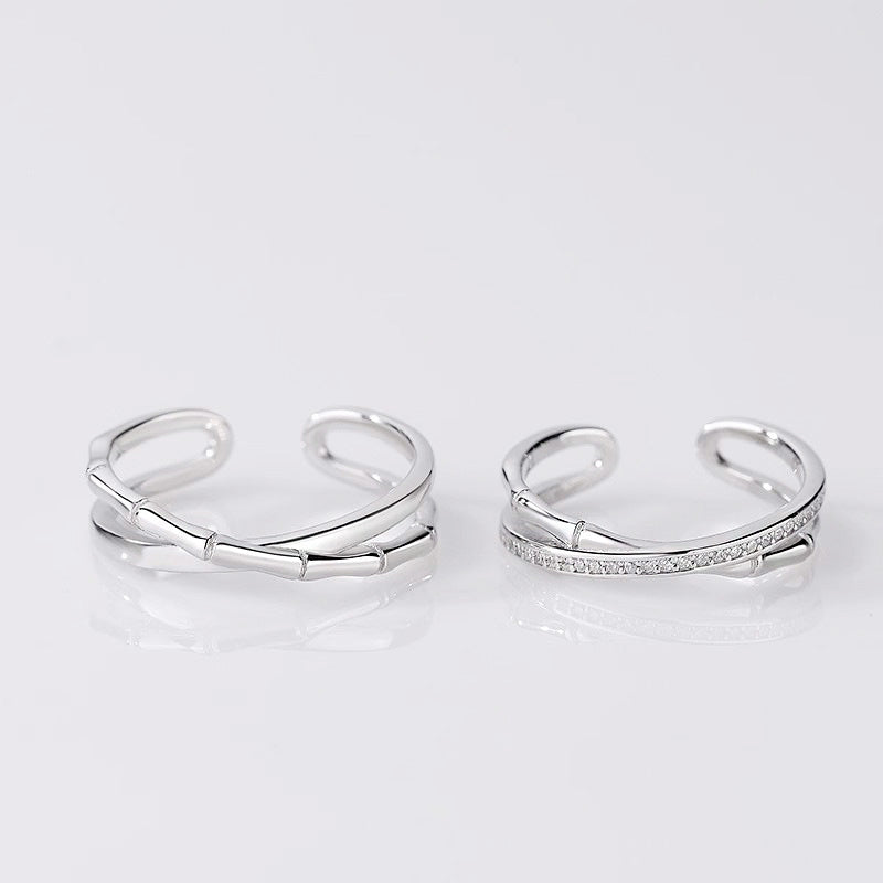 - Product Name: 925 Sterling Silver Bamboo Cross Design Cuff Open Couple Ring Set