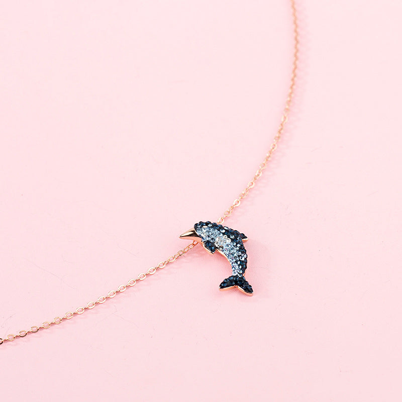 - Both silver and rose gold versions of the 925 sterling silver dolphin necklace with gemstones.