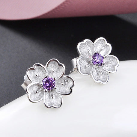 Introducing the 925 Sterling Silver Cherry Blossom Flower Stud Earrings, a perfect blend of nature's beauty and sophisticated design. These earrings are meticulously crafted to capture the delicate essence of cherry blossoms, making them an enchanting addition to any jewelry collection. The vibrant purple gemstone at the heart of each flower adds a captivating sparkle that catches the light beautifully.
