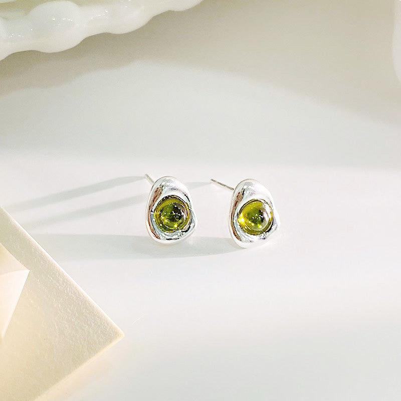 - A pair of sterling silver stud earrings featuring beautiful green opal gemstones.