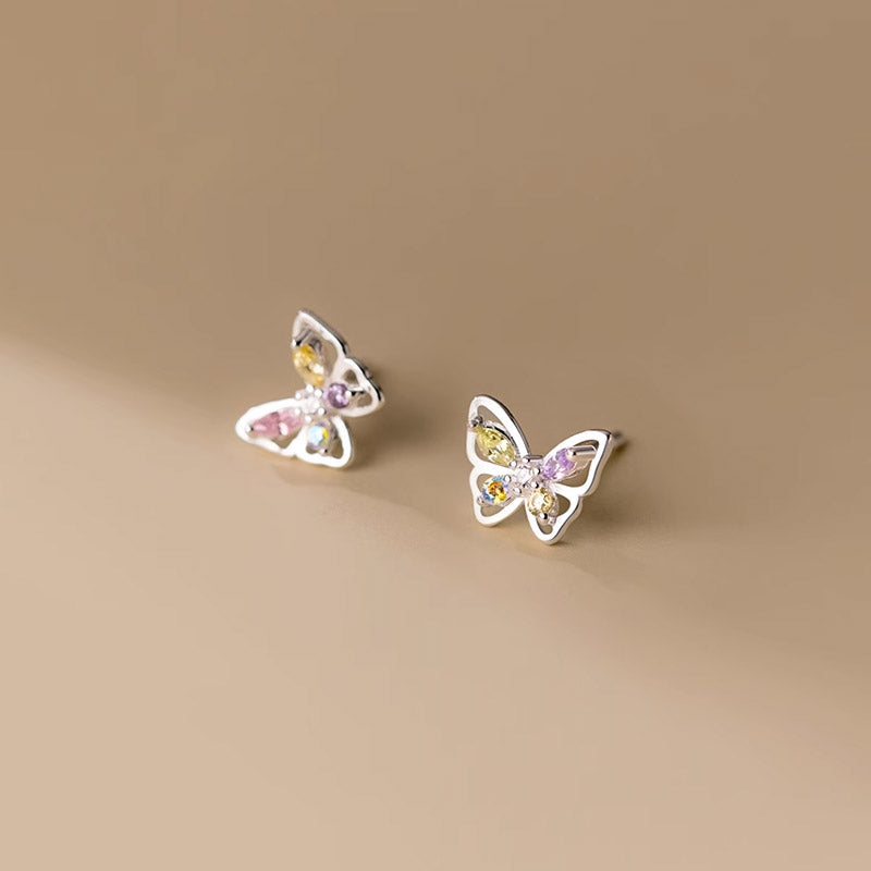 Elevate your accessory collection with our exquisite set of 925 Sterling Silver Butterfly Stud Earrings. Each pair is designed to capture the delicate grace of butterflies, intricately detailed and brought to life with shimmering cubic zirconia stones. This collection is perfect for those who appreciate fine craftsmanship and whimsical design.