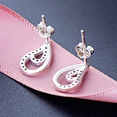 - A collection of 925 sterling silver water drop stud earrings with sparkling cubic zirconia.
