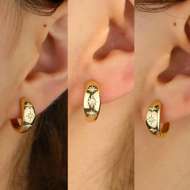 Celestial Elegance: CZ Starburst Huggie Hoops
