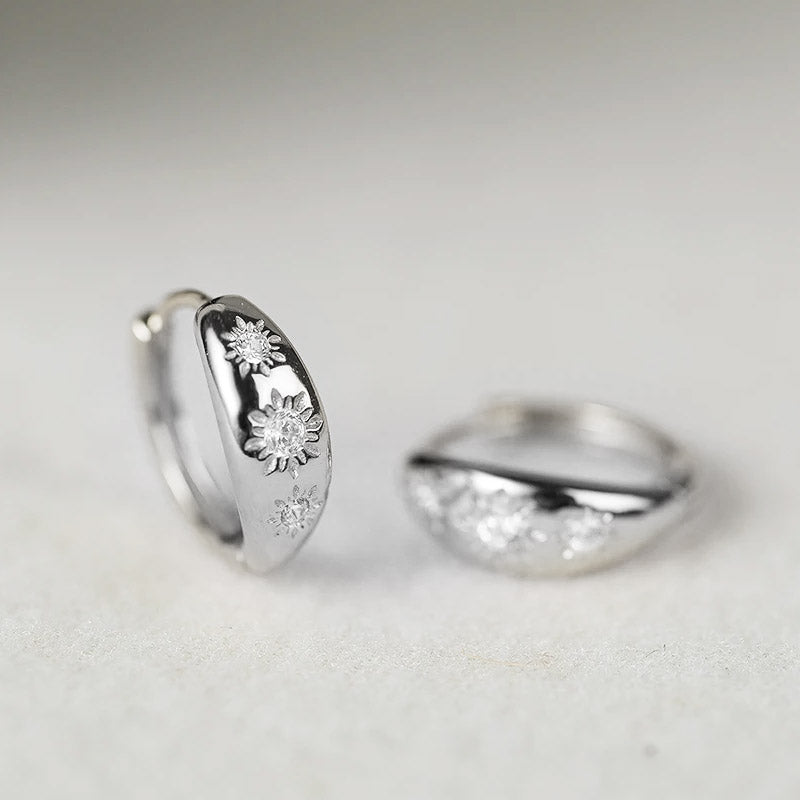 - Product Name: 925 Sterling Silver CZ Starburst Huggie Hoop Earrings