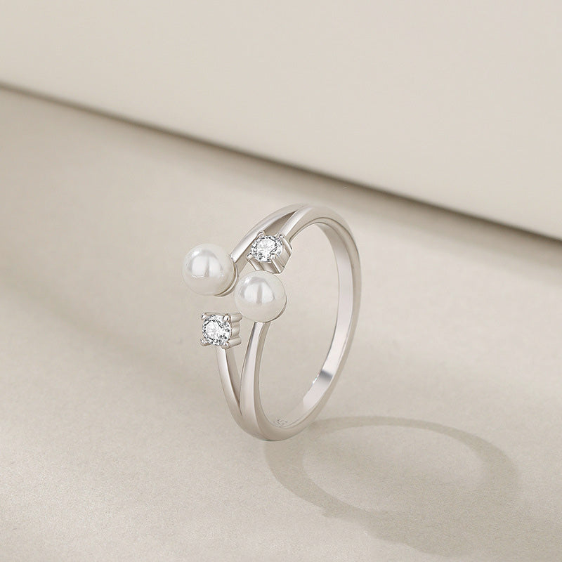 - Product Name: 925 Sterling Silver Double Pearl with CZ Open Ring Set of 5