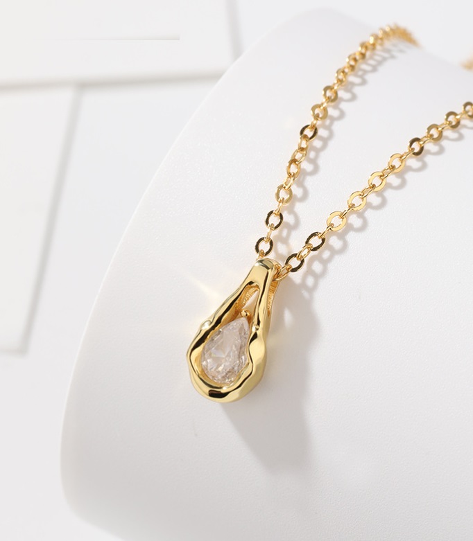 At its center, a beautifully cut cubic zirconia stone is set within a graceful droplet-shaped pendant, capturing light from every angle. This necklace is designed with wearer comfort in mind, featuring hypoallergenic and anti-tarnish properties to maintain its pristine condition over time.