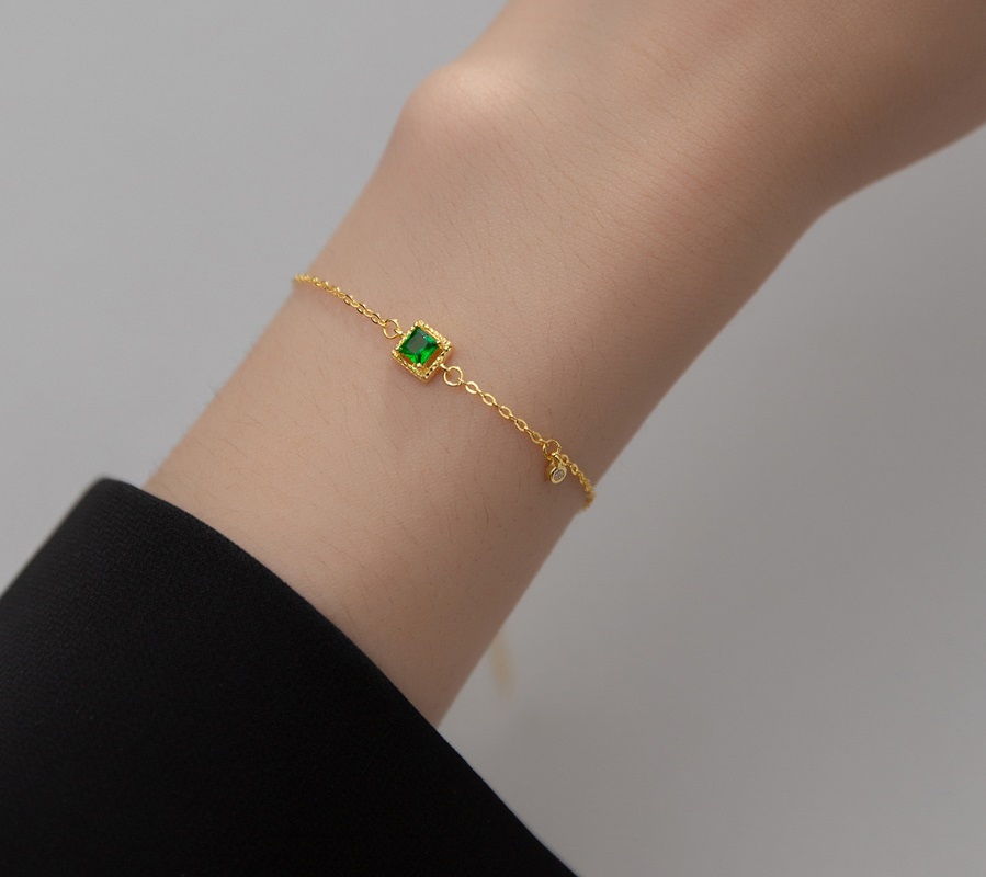 925 Sterling Silver Emerald Gold Plated Bracelet - Custom Jewelry Manufacturing