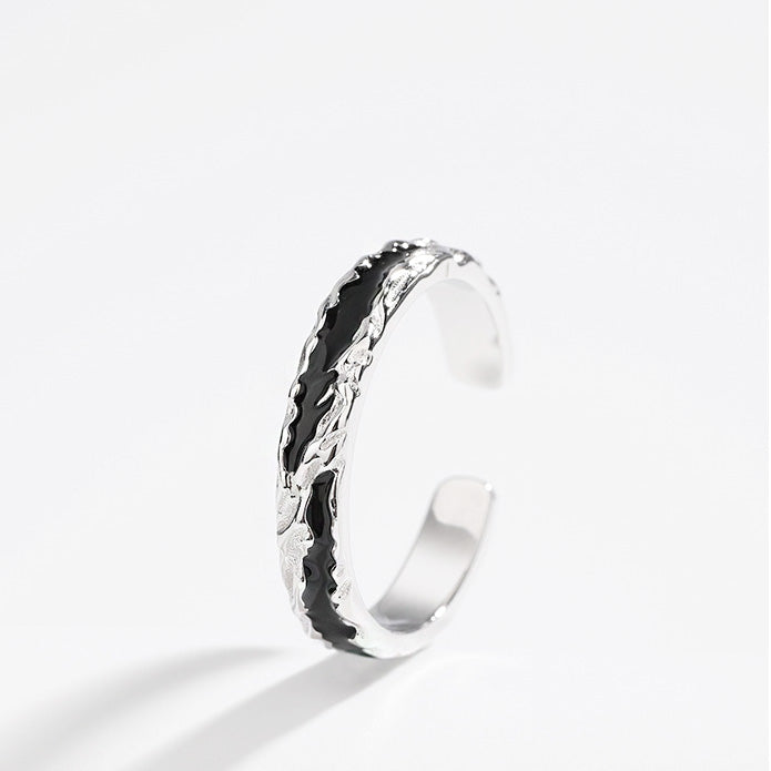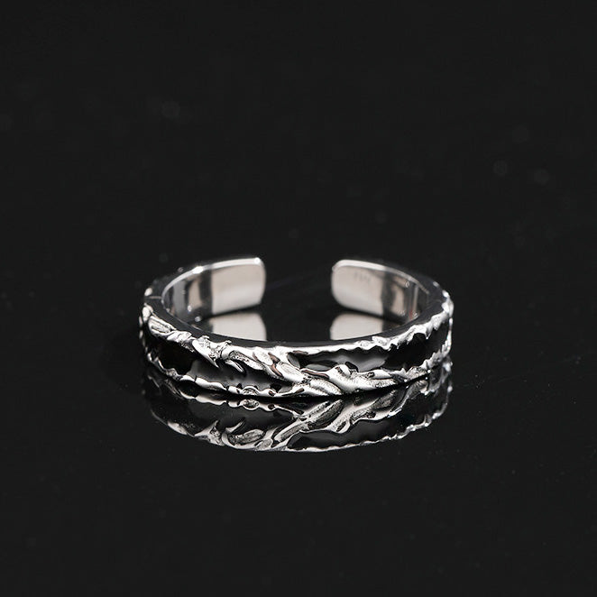 - A stylish 925 sterling silver open ring for men, featuring a unique wavy texture.