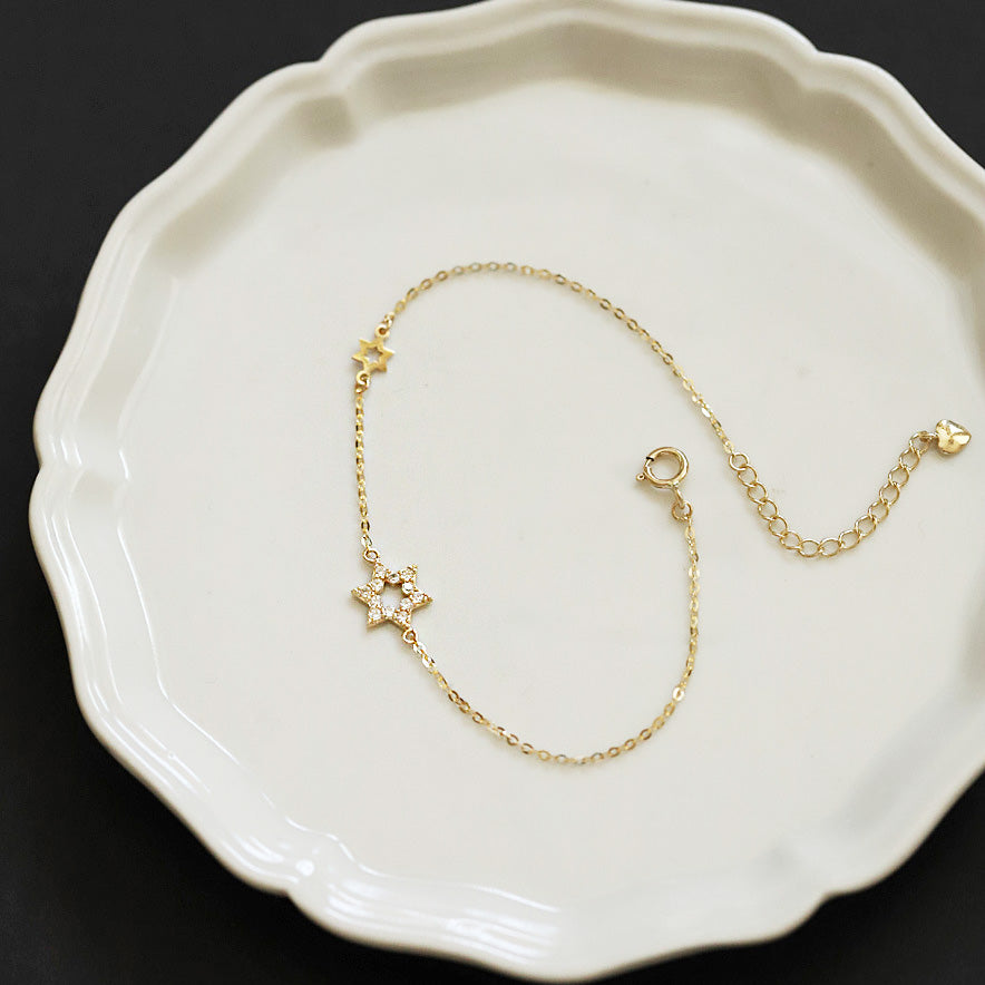 - Product Name: 925 Sterling Silver Gold-Plated Hexagram Star Bracelet Set