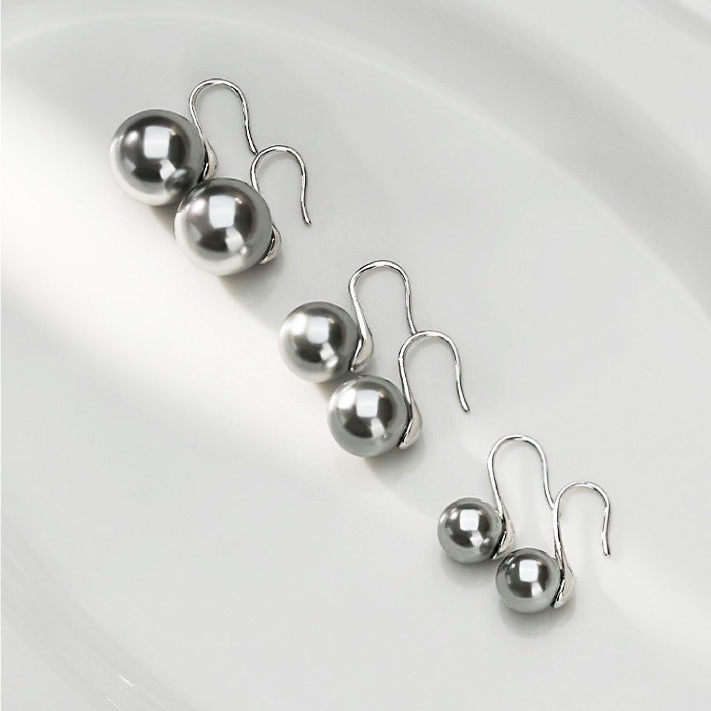 - Comparison of 8mm, 10mm, and 12mm grey pearl earrings to illustrate size options.