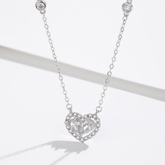 Elegant silver heart-shaped pendant on a delicate chain.