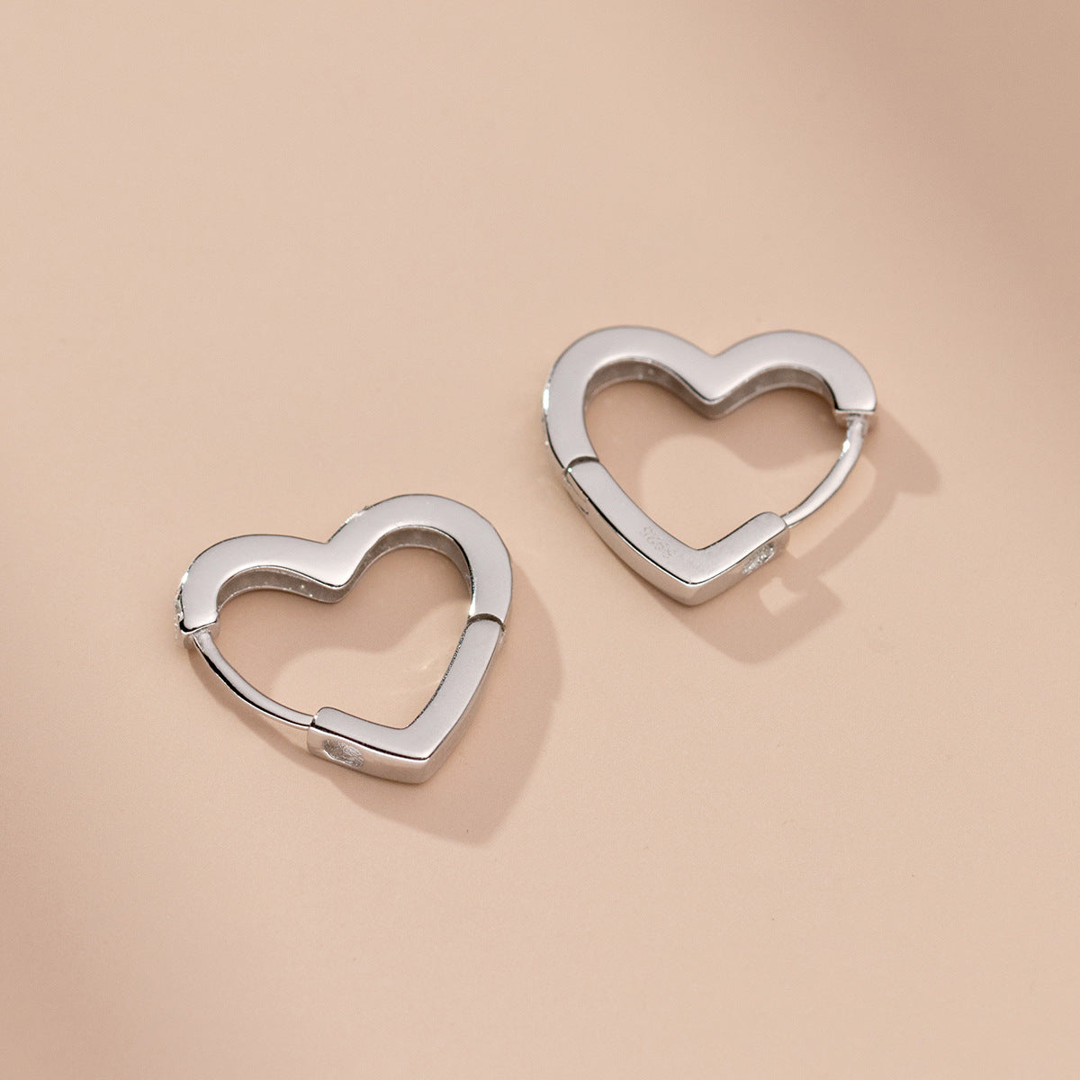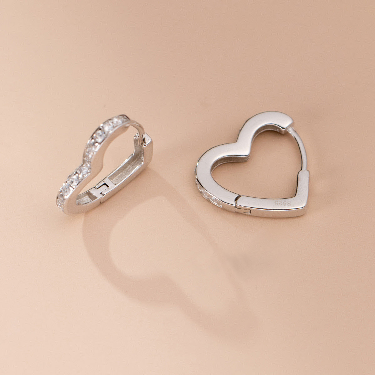 - Macro shot revealing the 'S925' stamp on the heart earrings, confirming their sterling silver quality.