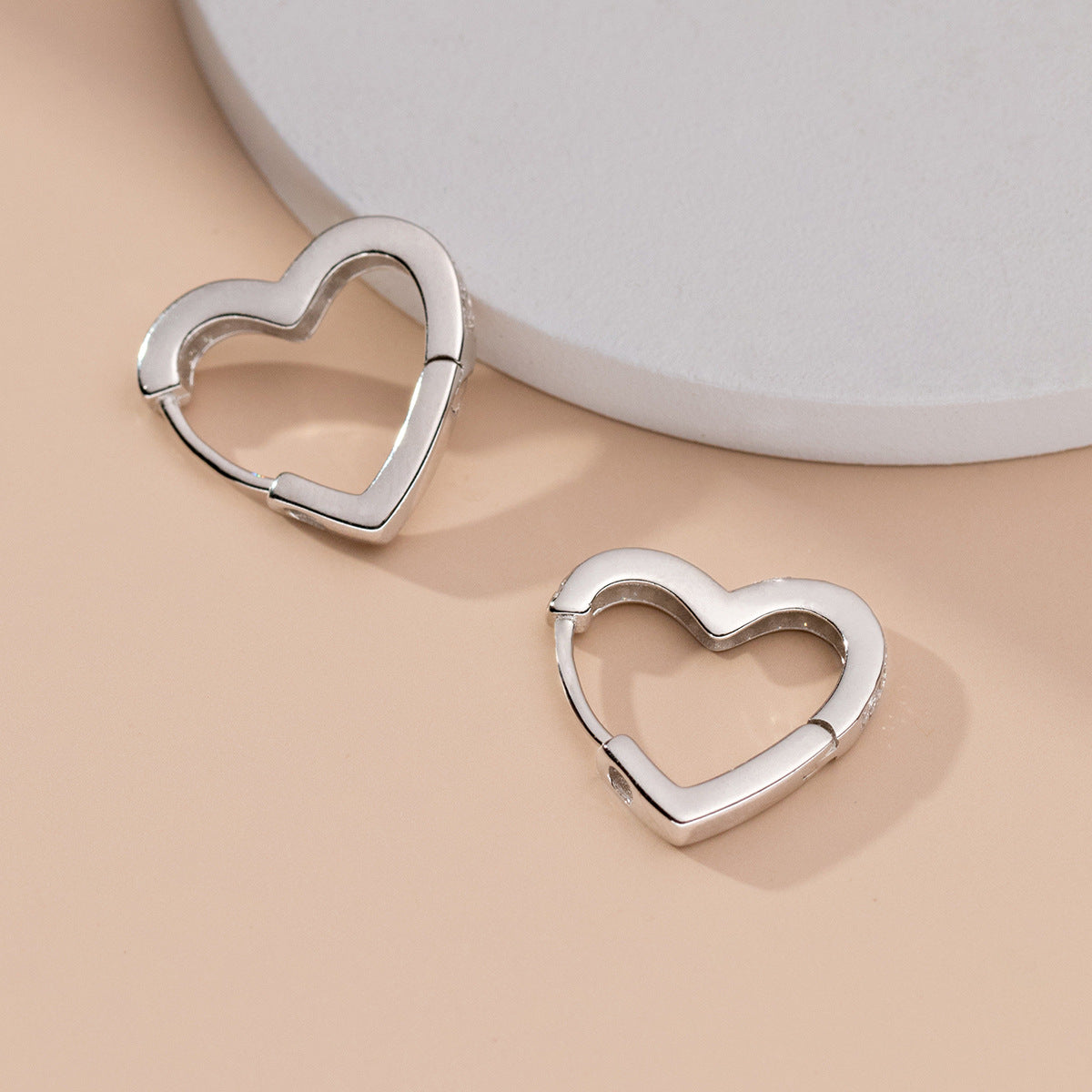 - Detailed product shot of the 925 sterling silver heart-shaped hoop earrings.