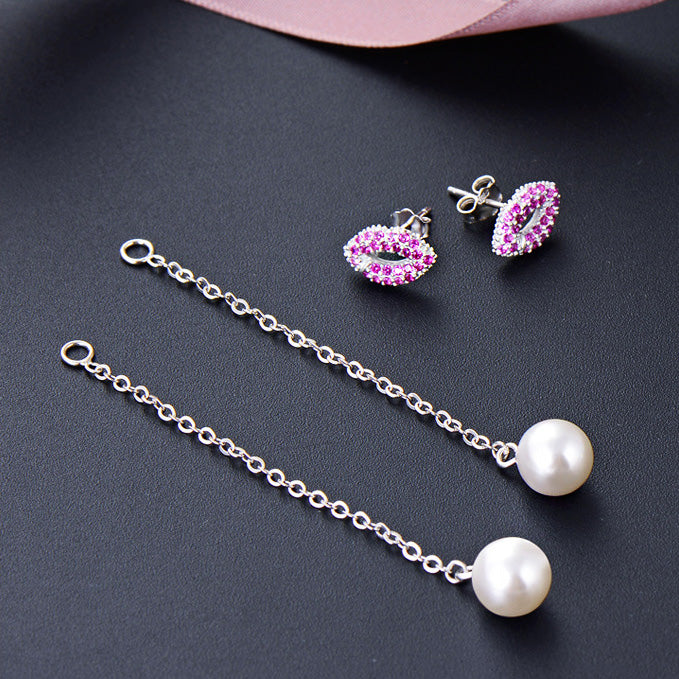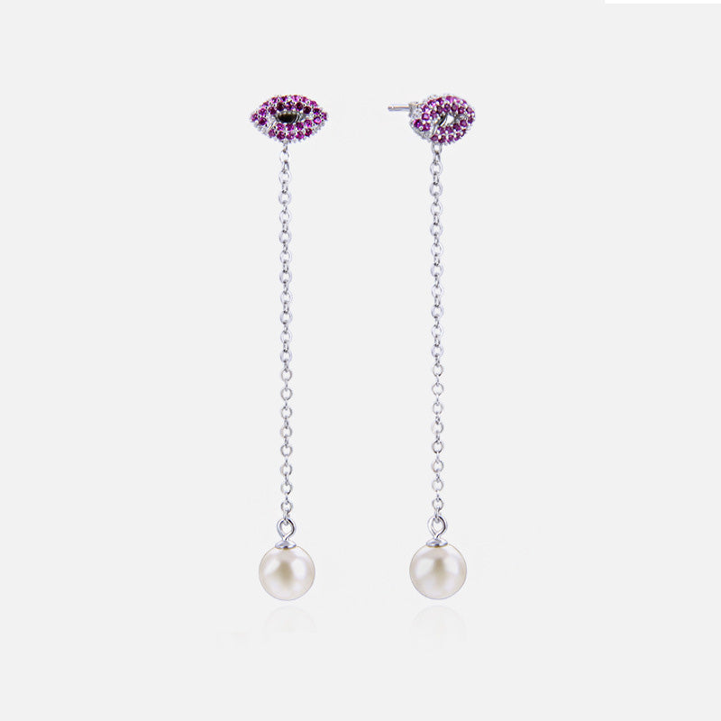 925 Sterling Silver Long Tassel Chain Pearl Pink Kiss Lip Stud Earrings - Custom Jewelry Manufacturing