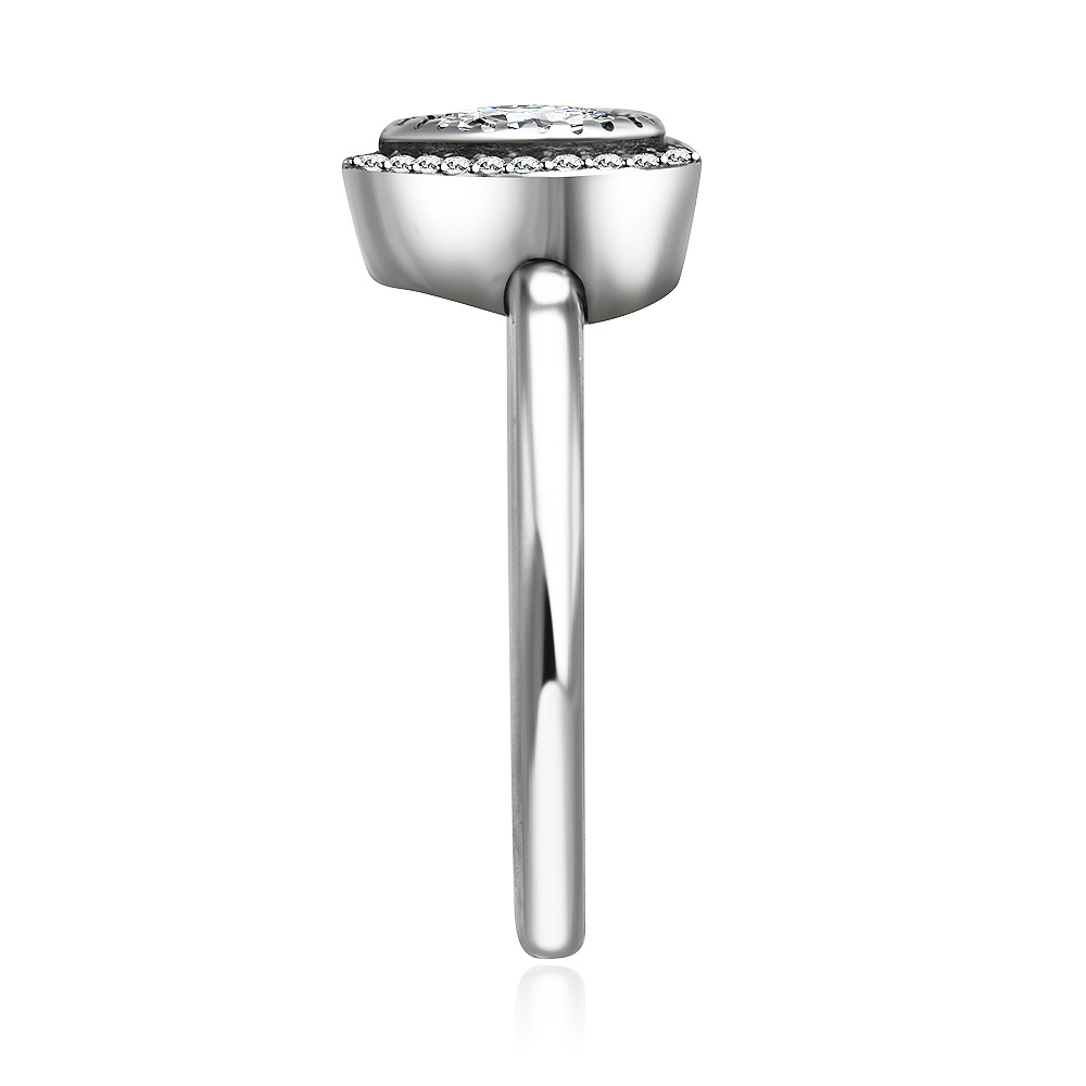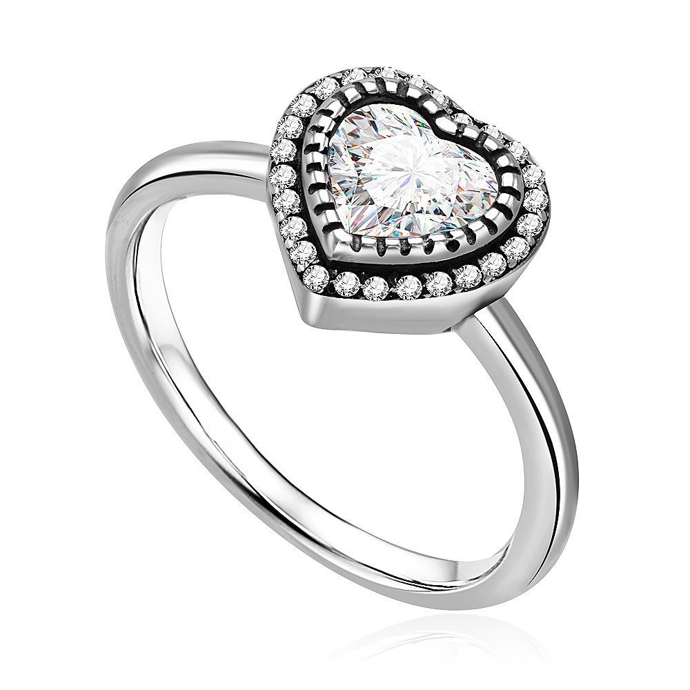 Side view of the sterling silver love heart ring showcasing the brilliant cubic zirconia stones.