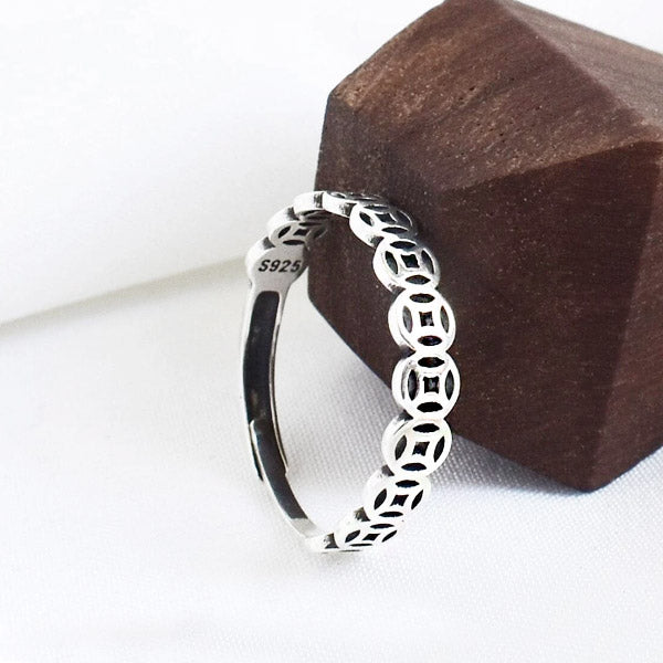 - Product Name: 925 Sterling Silver Lucky Fortune Vintage Chinese Coin Adjustable Ring Set