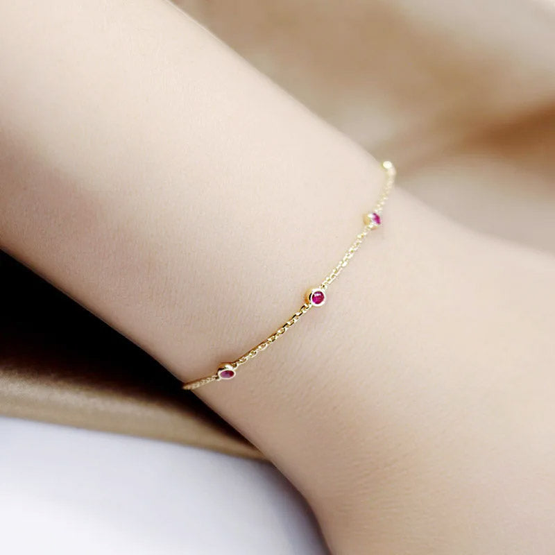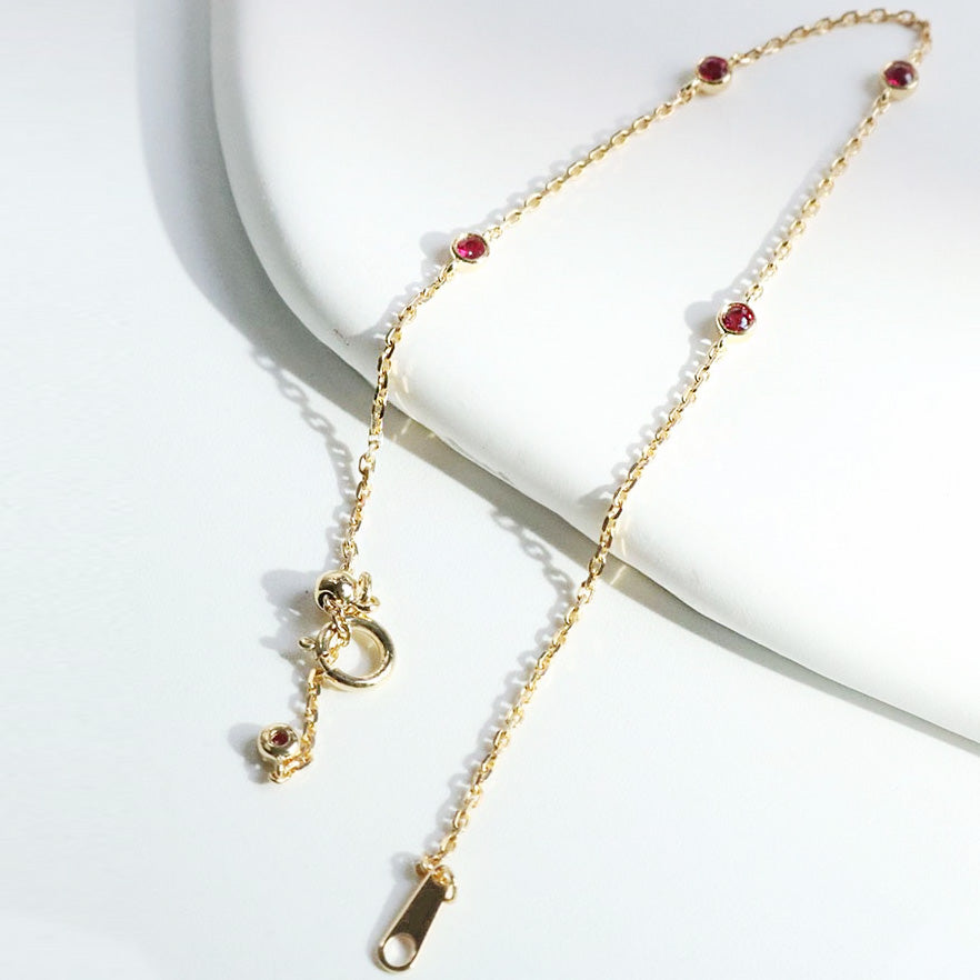 925 Sterling Silver Mini Ruby Cubic Zirconia Link Chain Bracelet