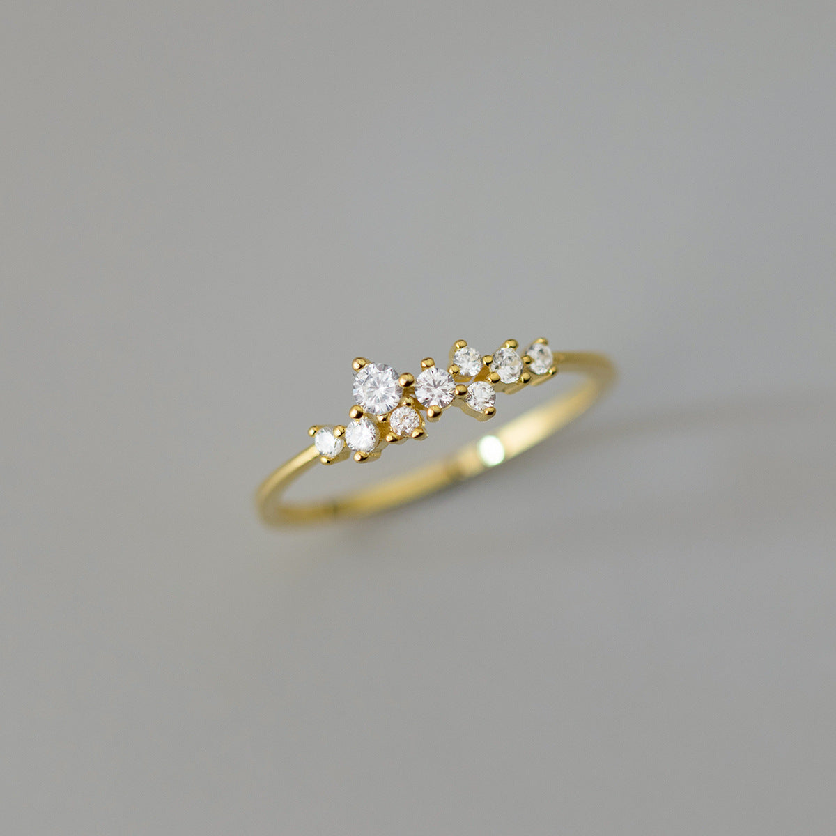 - Elegant Design: A sleek, minimalist design with irregularly placed zirconia stones that create a sophisticated starry, dot-like effect.