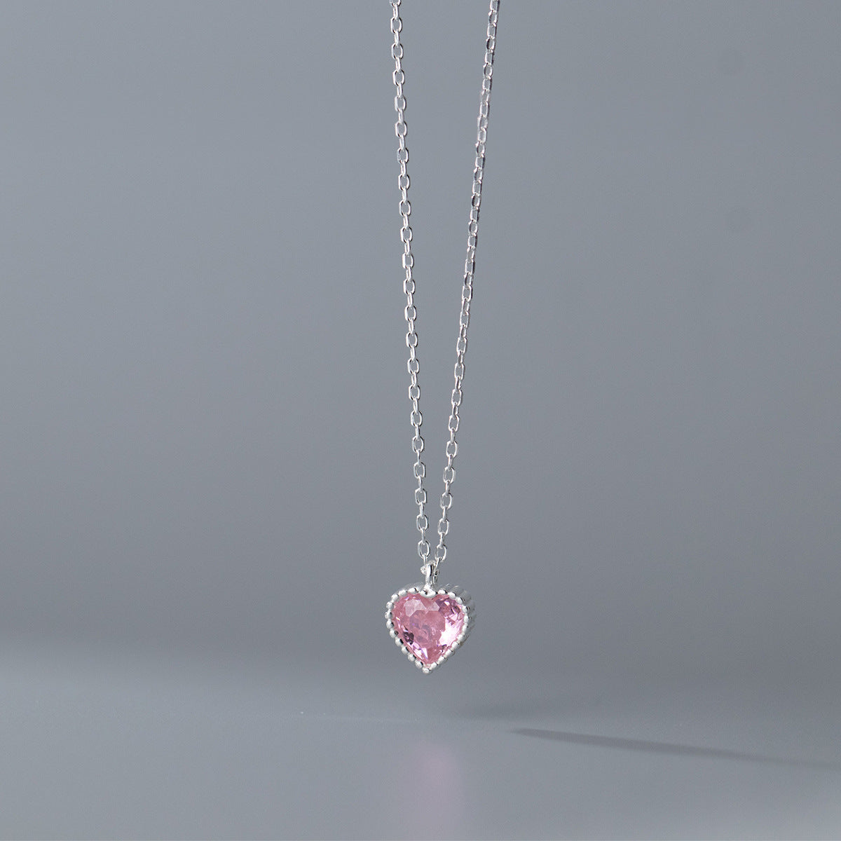Elegant 925 sterling silver necklace featuring a heart-shaped pink zircon stone.
