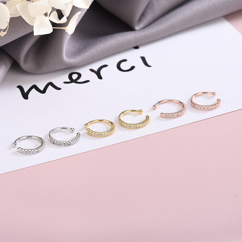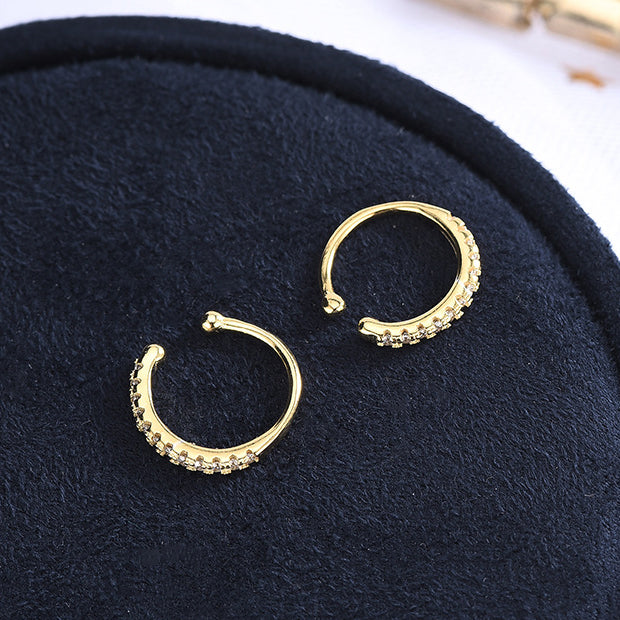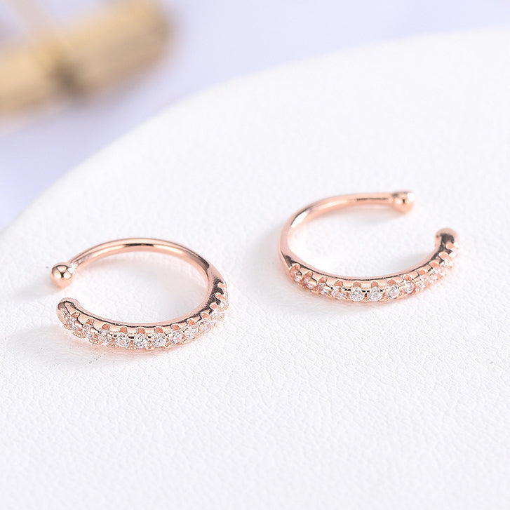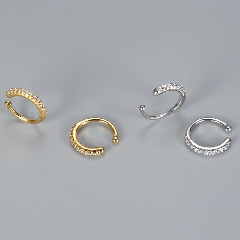 Elevate your style with our stunning 925 Sterling Silver Non-Pierced Ear Cuffs. Expertly crafted and encrusted with brilliant Cubic Zirconia, these earrings offer the perfect blend of glamour and comfort. Designed for those who love the look of cartilage piercings without the commitment, these ear cuffs simply hug the ear for a secure and stylish fit. Available in three beautiful finishes—classic silver, luxurious gold, and romantic rose gold—they are perfect for mixing and matching to create a personalized look.